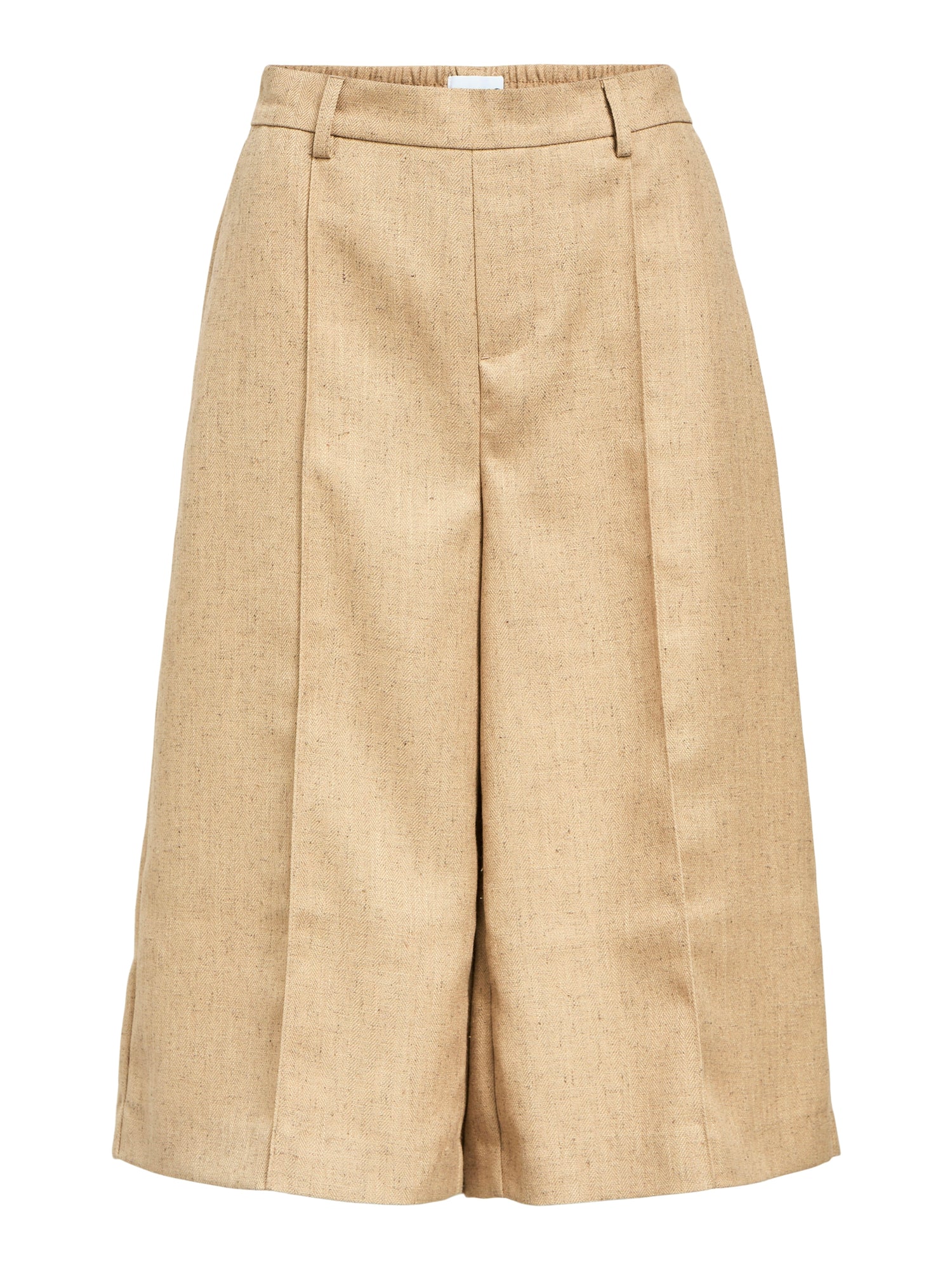 CULOTTE DE PERNERA ANCHA, PARTE DE UN CONJUNTO CON CHALECO , CINTURA ALTA ELÁSTICA EN LA ESPALDA, TRABILLAS DE CINTURÓN, BOLSILLOS LATERALES, DETALLE DE PLIEGUE A PRESIÓN.