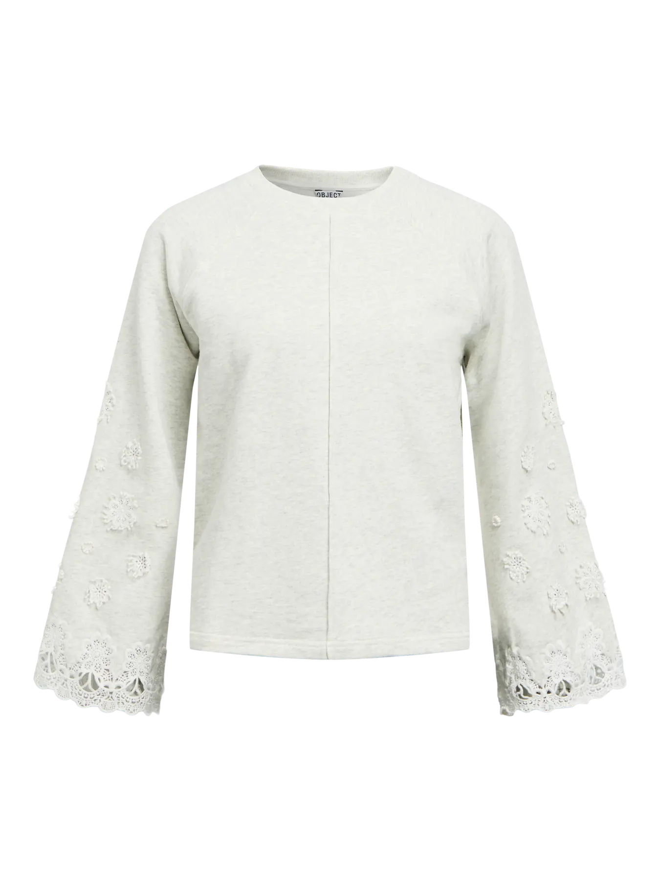 Sudadera gris clarita con bordados en manga, ancha y fluida