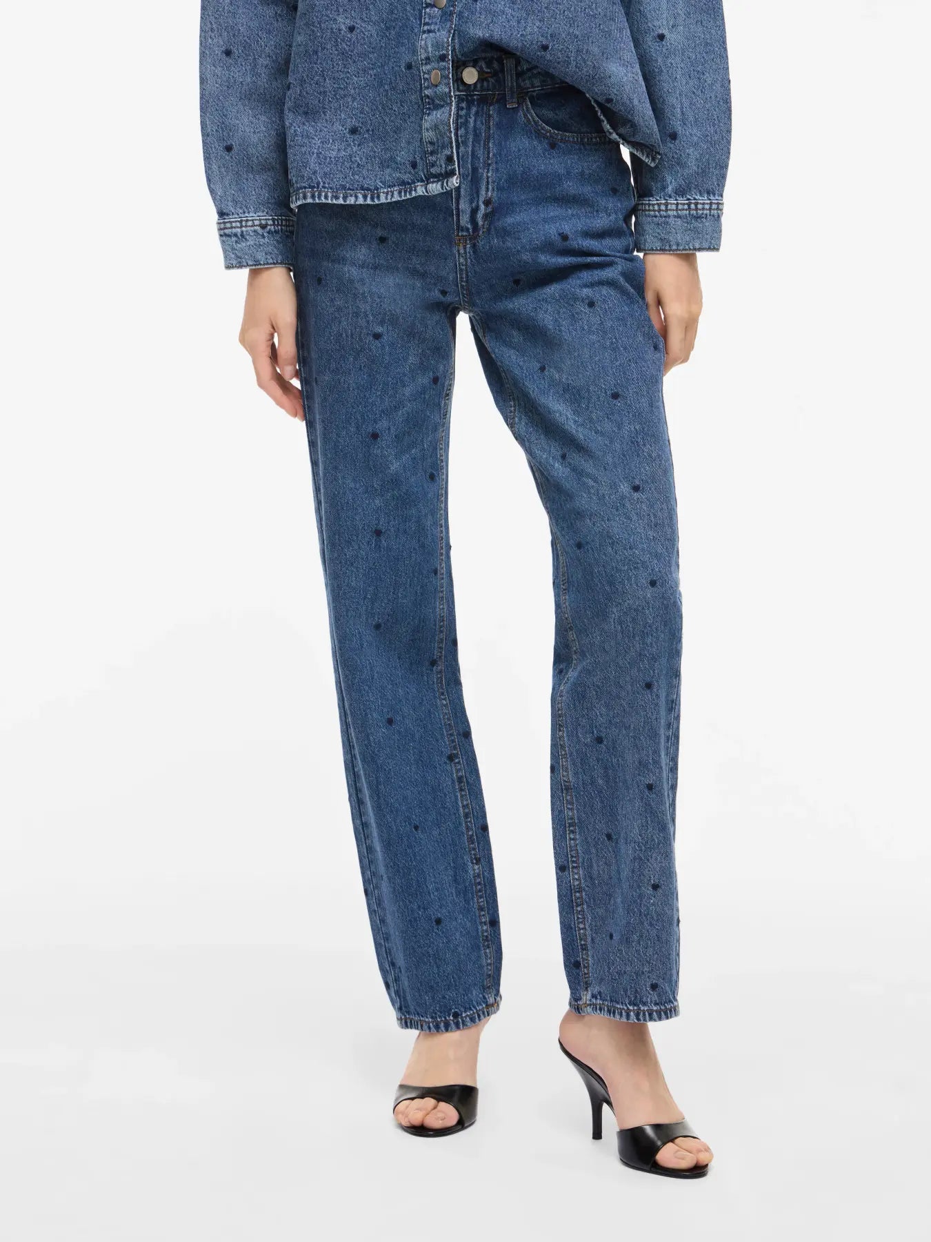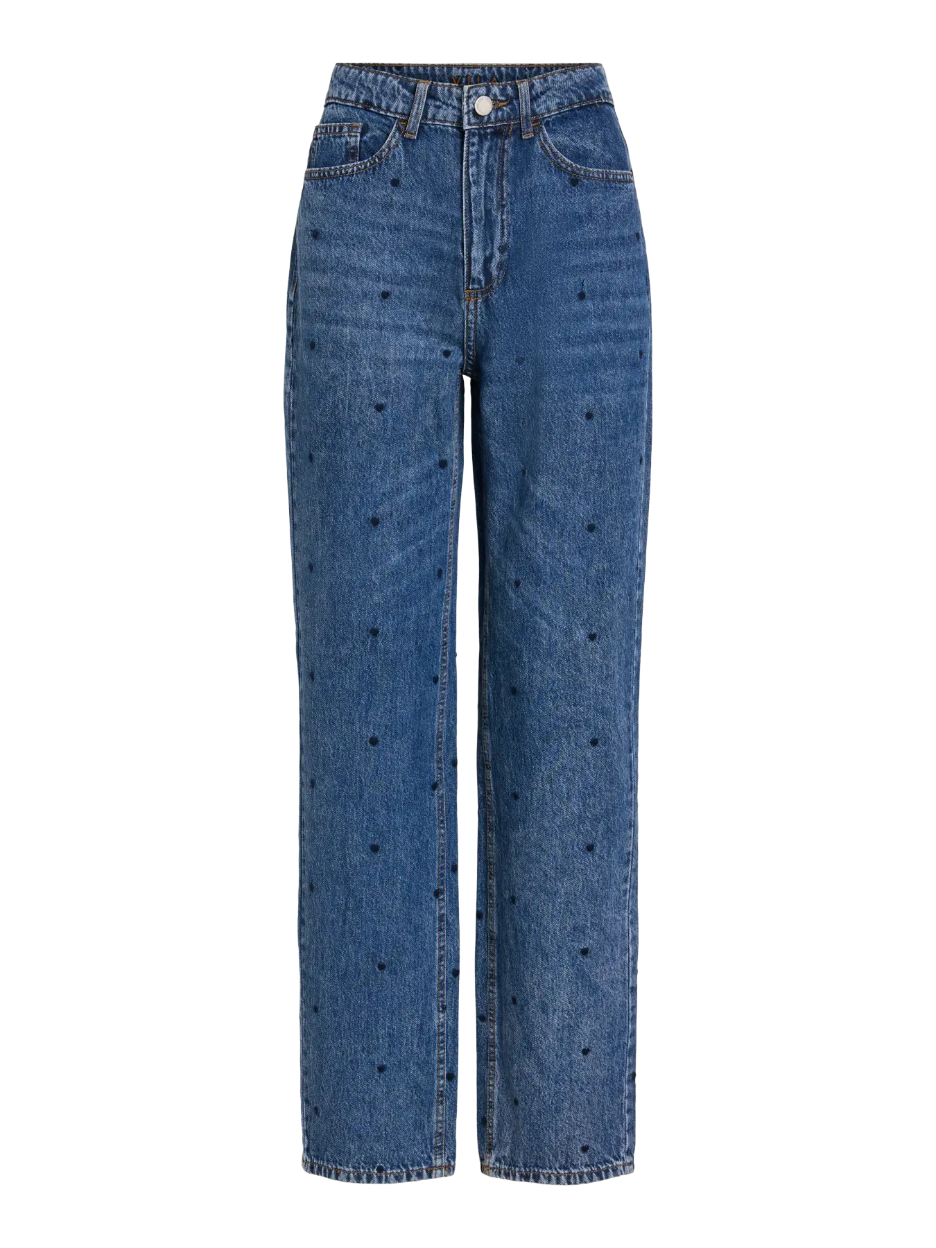 Nuestro clásico vikelly con lunares bordados, tono vaquero medium, sientan ideales, pierna recta